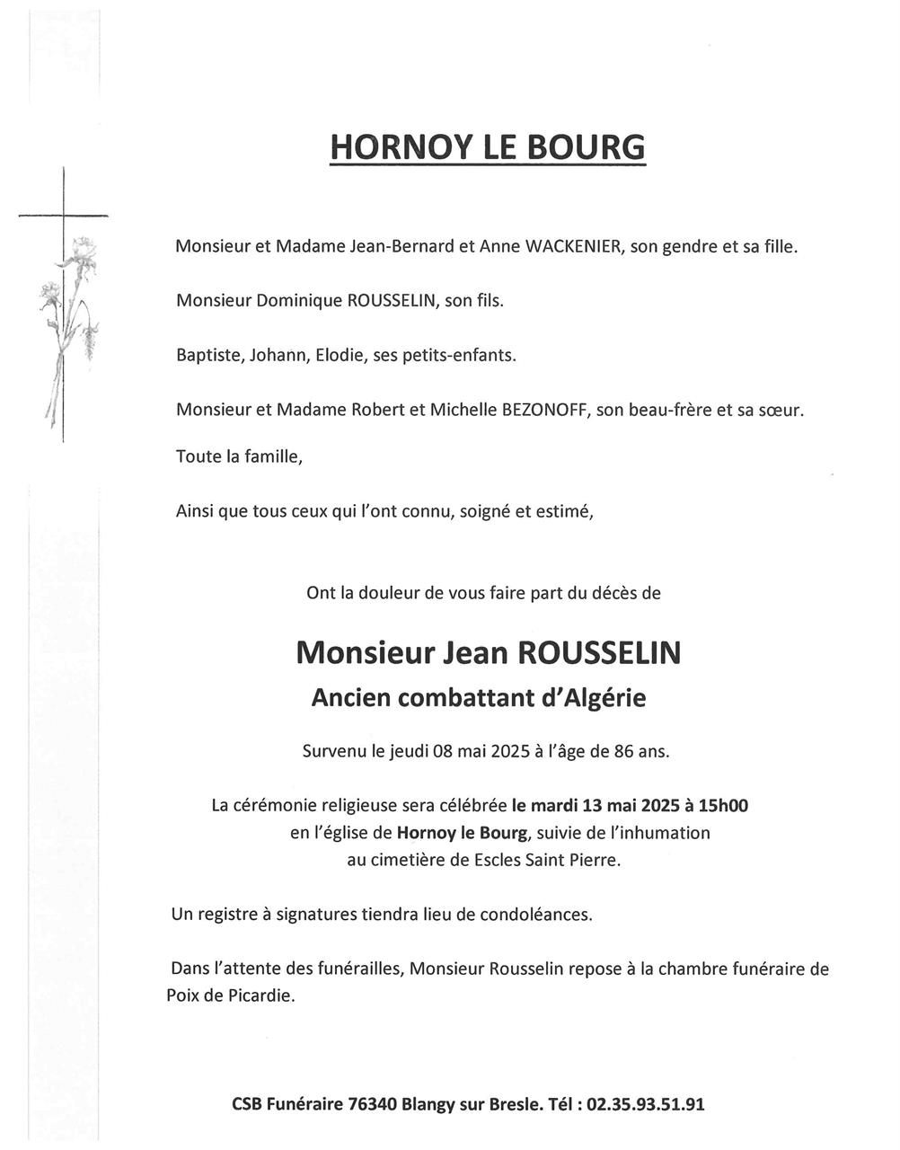 Monsieur JEAN, PIERRE, HECTOR ROUSSELIN