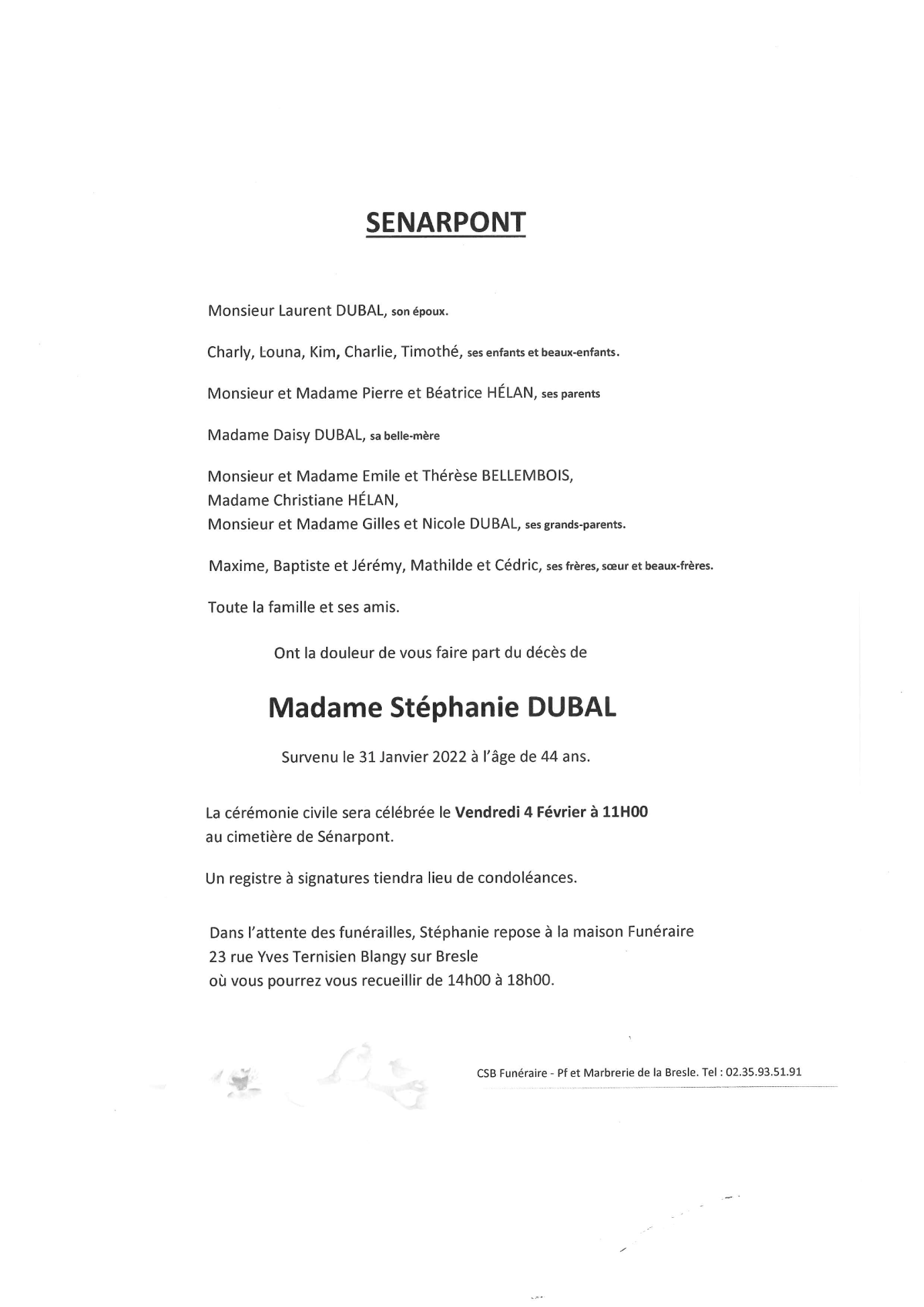 Epouse de Monsieur LAURENT DUBAL