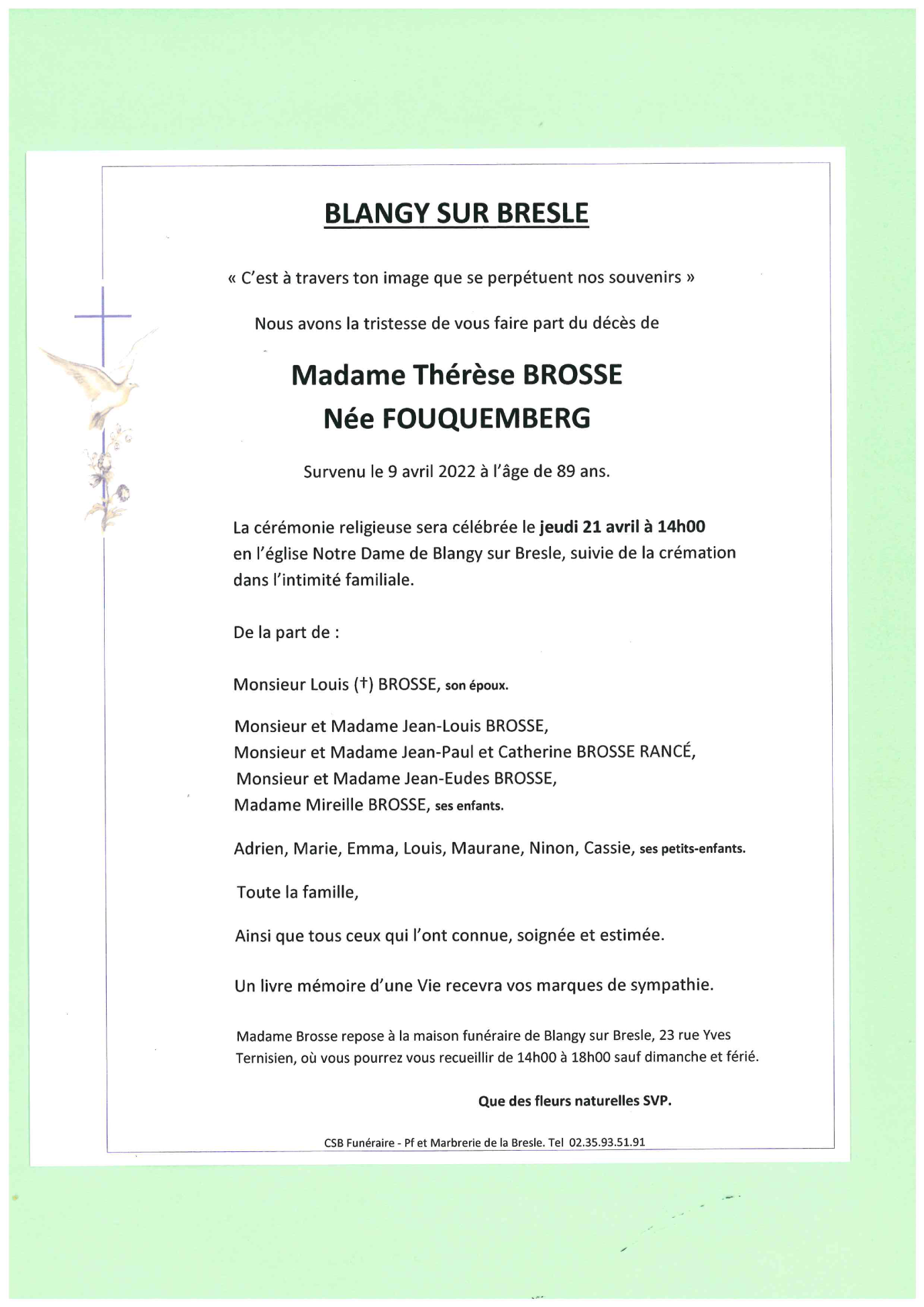 Madame Thérèse, Marguerite, Paulette BROSSE née FOUQUEMBERG