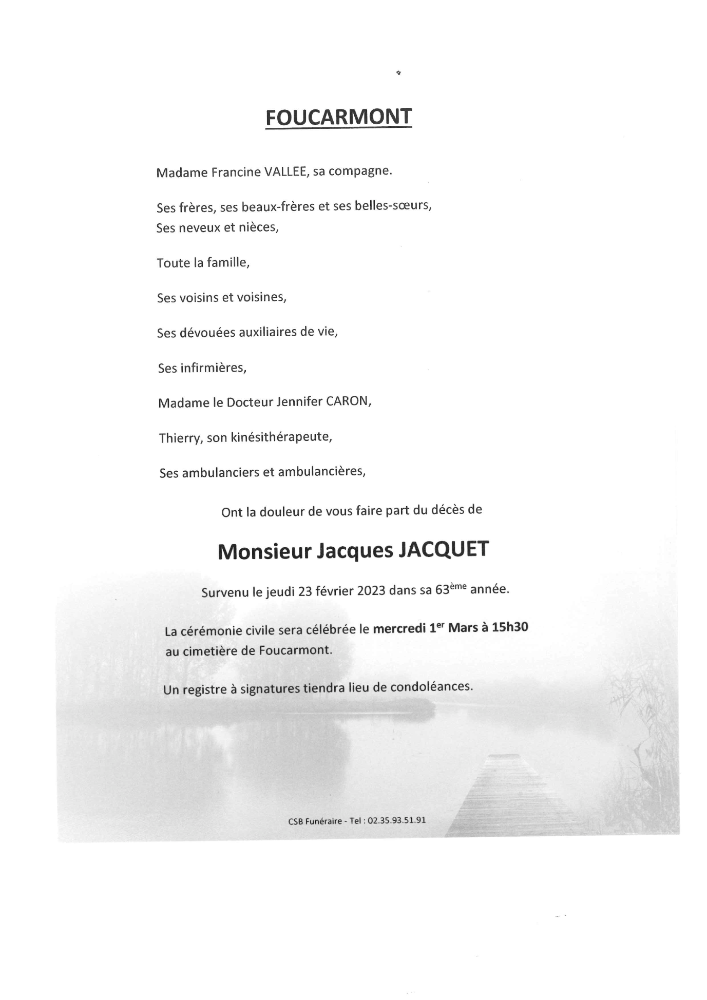 Décédé à Eu (76260, France) le jeudi 23 février 2023 à l'âge de 62 ans